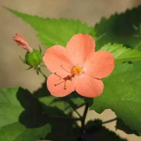 咖啡黄葵 Moench)亦称黄秋葵,是锦葵科一年生草本植物。茎圆柱形,疏生散刺。叶掌状,裂片阔至狭,…