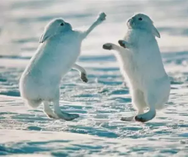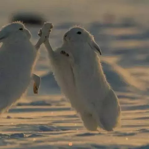 北极兔并不羞怯胆小,易于驯服。平均来说,北极兔的行动速度可达四十英里左右。而在遇到危险时,北极兔会站起来,并且象袋鼠一样只用后脚快速跳跃。