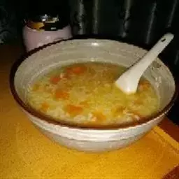 蔬菜粥是一种食物,制作原料主要有牛肉、大米、胡萝卜等。将大米炒至一定程度后加入胡萝卜、洋葱和水,用文火煮烂,临出锅前再用盐和酱油调味。