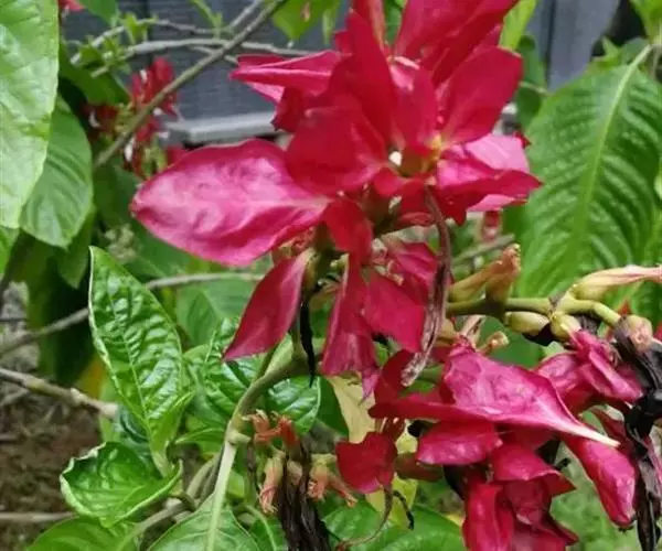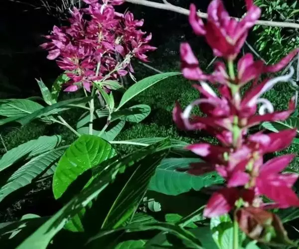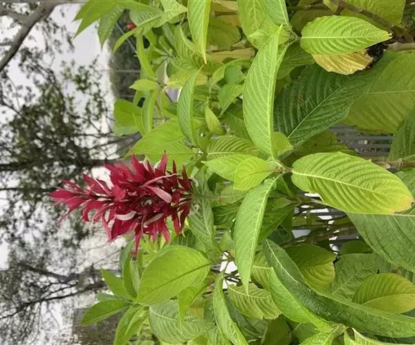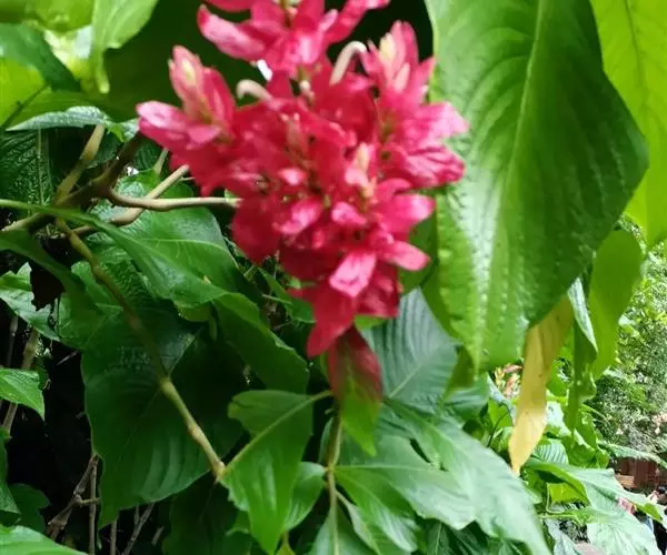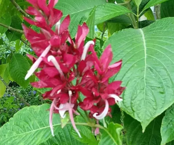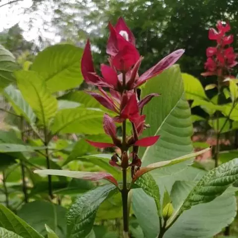 赤苞花Megaskepasma erythrochlamys Lindau又称巴西红斗篷、巴西羽毛、 红爵床、爵床胭脂,为爵床科赤苞花属常绿半木质化灌木,原产于萨尔瓦多、洪都拉斯、尼加拉瓜、哥斯达黎加、巴拿马、苏里南和委内瑞拉的多雨的森林地带,国内在西双版纳植物园、厦门植物园、华南植物园等地有少量引种栽培。