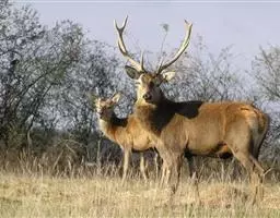 坡鹿是偶蹄目鹿科鹿属动物,体长1.6米左右,体重60~100千克。体形狭长,颈部和四肢也较为细长,…