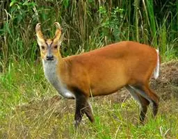 水鹿是偶蹄目鹿科鹿属哺乳动物,又称黑鹿、春鹿、山牛。身体高大粗壮。头骨细长,鼻骨、额骨发达,…