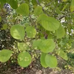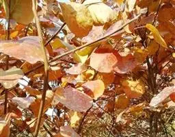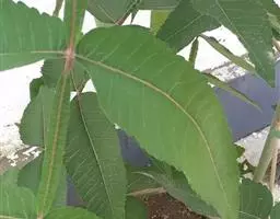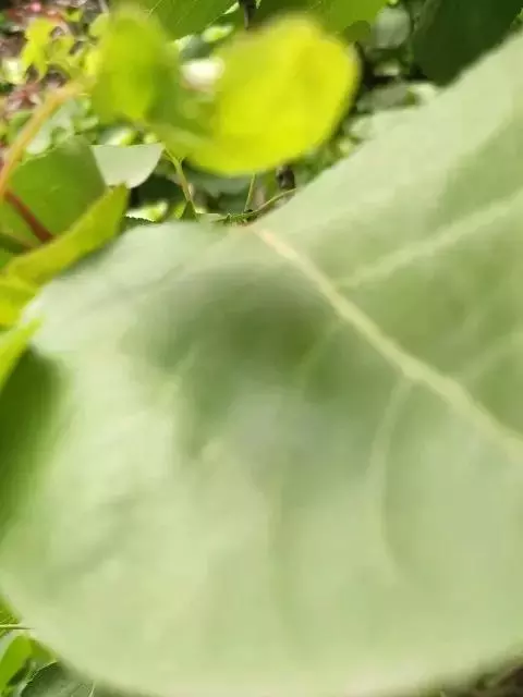 粉背黄栌叶卵圆形,较大,长3.5-10厘米,宽2.5-7.5厘米,无毛,但叶背显著被白粉;叶柄较长,…