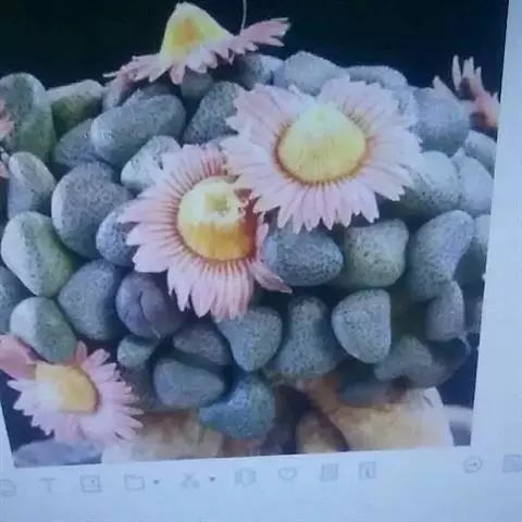 生石花,番杏科生石花属多年生肉质草本植物。植株几乎无茎;花朵较大,颜色艳丽,呈多边形,…
