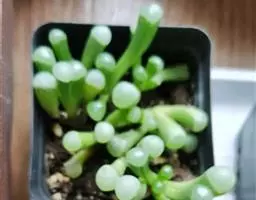 五十铃玉是番杏科窗玉属的多年生肉质植物,别名有“棒叶花”“婴儿脚趾”。植株高5厘米,叶片淡绿色,肉质,…