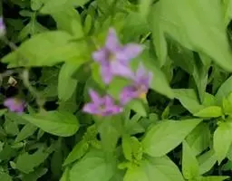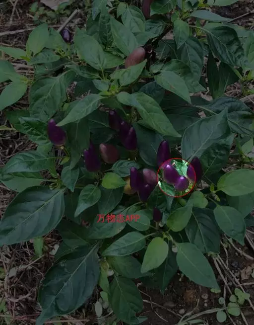 植物体多二歧分枝。叶长4-7厘米,卵形。花常单生于二分叉间,花梗直立,花稍俯垂,花冠白色或带紫色。果梗及果实均直立,果实较小,圆锥状,长约1.5 (-3)厘米,成熟后红色或紫色,味极辣。