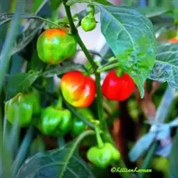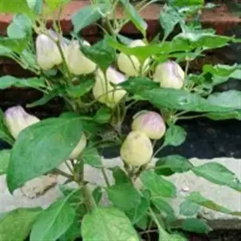 (Var.grossum Bailey)类型朝天椒品种:该类型的朝 灯笼椒 天椒品种很少,有“小铜锤”等品种。小铜锤朝天椒株型高大,生长势较强,株高100~110厘米,开展度40~50厘米。主茎高50~60厘米,基部粗0.7厘米左右,长出14~16片的真叶开始分枝。属无限分枝类型,二杈分枝。密植时无侧枝发生,稀植时可发生3~4条有效侧枝。叶片肥大,主茎上的大叶片,长达15厘米,宽达7厘米,叶柄长达9厘米。叶色深绿,较抗病毒病。连续结果性强,椒果朝天单生。果实为方灯笼型,果面光滑,嫩熟果为青色,老熟果为红色。果长3.5厘米左右,横径3.5厘米左右,果柄长5~6厘米。椒籽多,香味浓,辣度高,品质佳。多作为干椒栽培,也可作为观赏椒栽培。