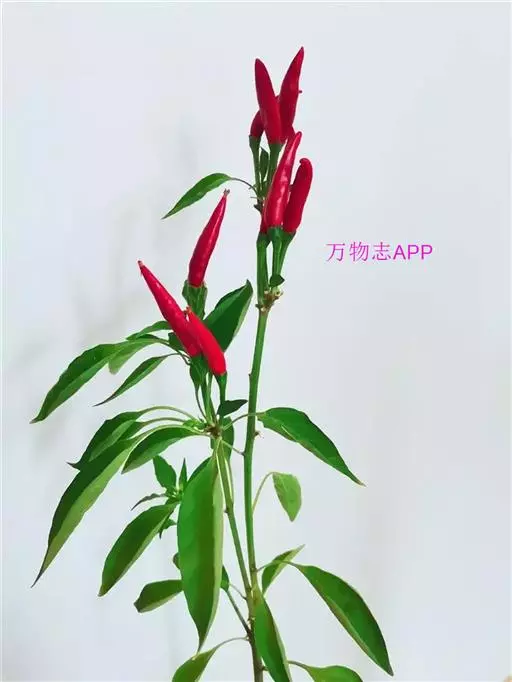 朝天椒茄科辣椒属一年或多年生草本植物;卵形;花通常单只生长于二分叉间,花梗直立,花稍俯垂,…