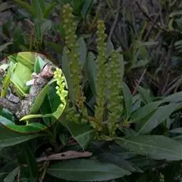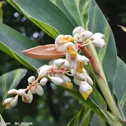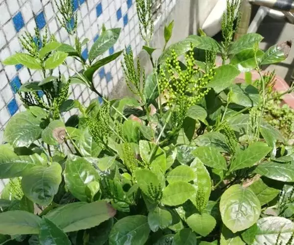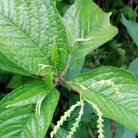 穗状花序排列成圆锥花序状,通常顶生,少有腋生;苞片三角形;花小,黄绿色,极芳香;雄蕊3枚,药隔合生成一卵状体,上部不整齐3裂,中央裂片较大,有时末端又浅3裂,有1个2室的花药,两侧裂片较小,各有1个1室的花药;子房倒卵形。花期4-7月,果期8-9月。