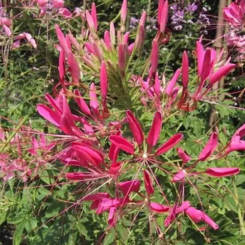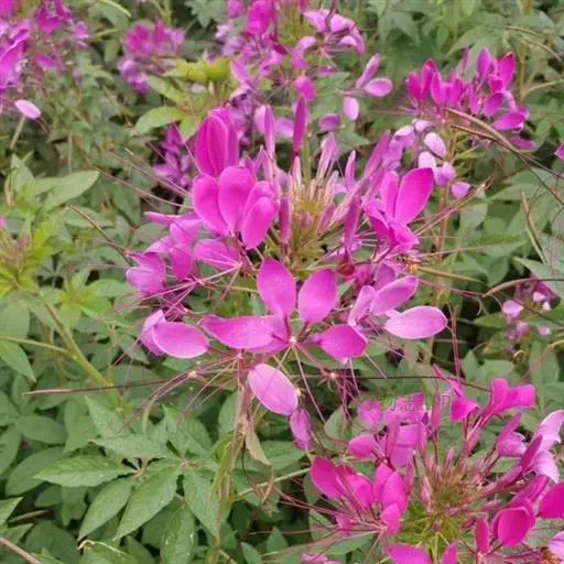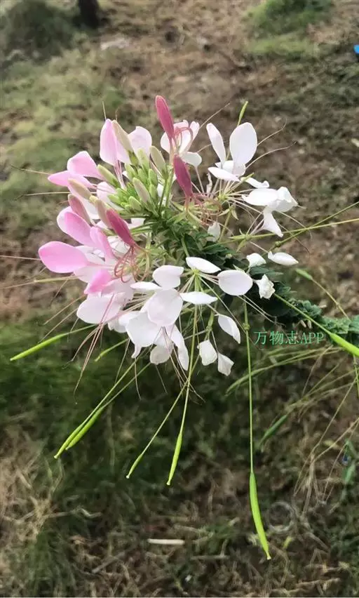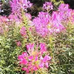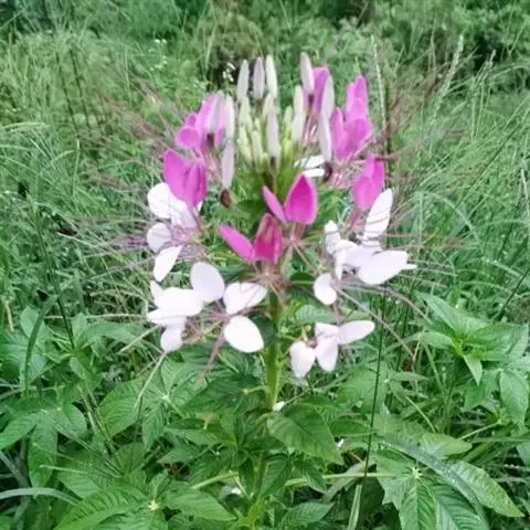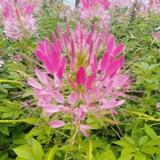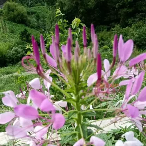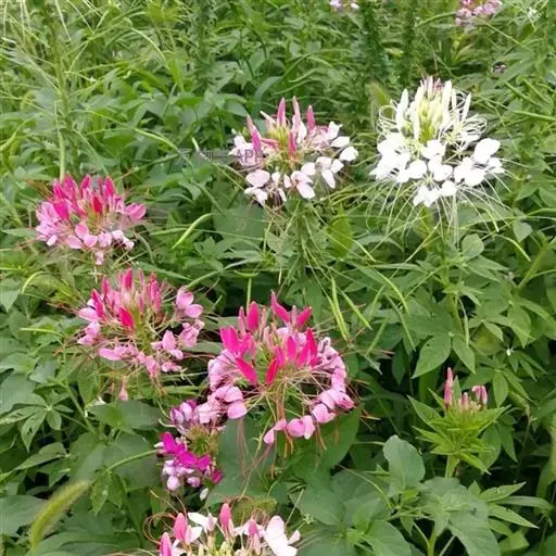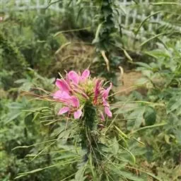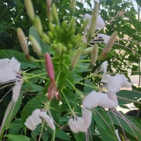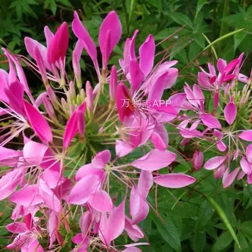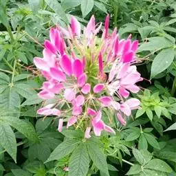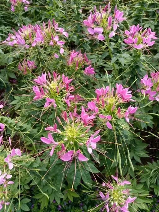 醉蝶花(学名:Cleome spinosa Jacq.):一年生草本植物。花茎直立,株高40厘米-60厘米,有的品种可达1米, 其茎上长有粘汁细毛,会散发一股强烈的特殊气味;叶片为掌状复叶,小叶5枚-7枚,为矩圆状披针形;总状花序顶生,花由底部向上次第开放,花瓣披针形向外反卷,花苞红色,花瓣呈玫瑰红色或白色,雄蕊特长;蒴果圆柱形,种子浅褐色。花期在6月-9月,其花茎长而壮实,花朵盛开时,总状花序形成一个丰满的花球,朵朵小花犹如翩翩起舞的蝴蝶,非常美观。中国无野生,各大城市常见栽培。原产热带美洲,全球热带至温带栽培以供观赏,也是一种优良的蜜源植物。