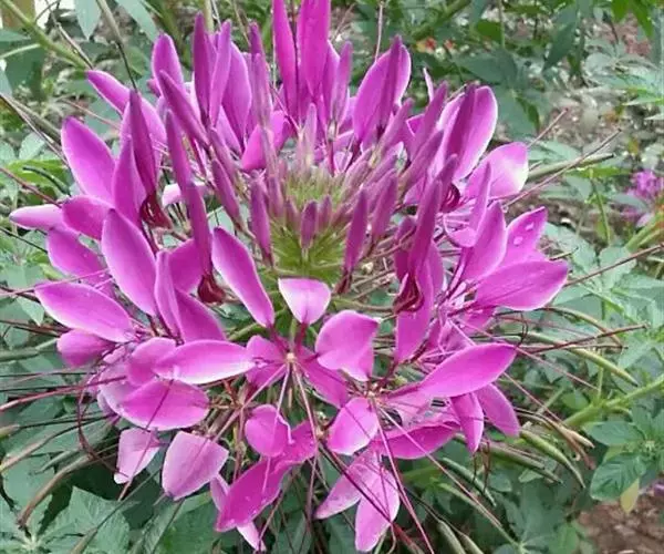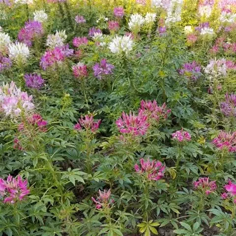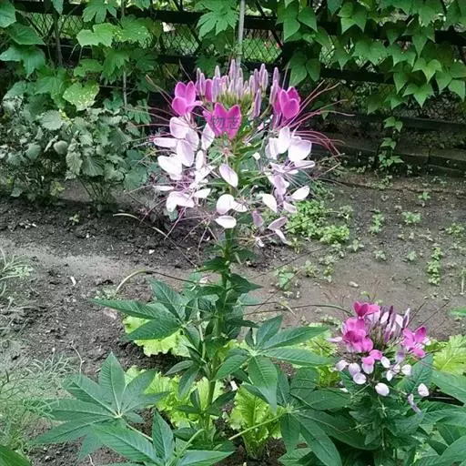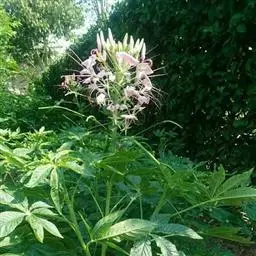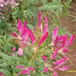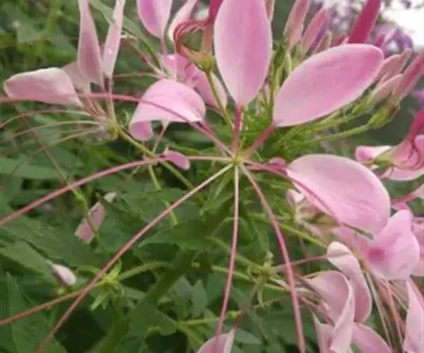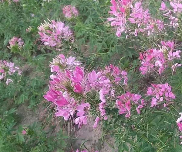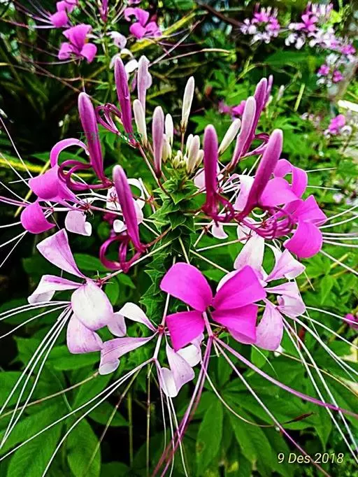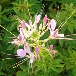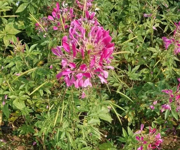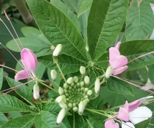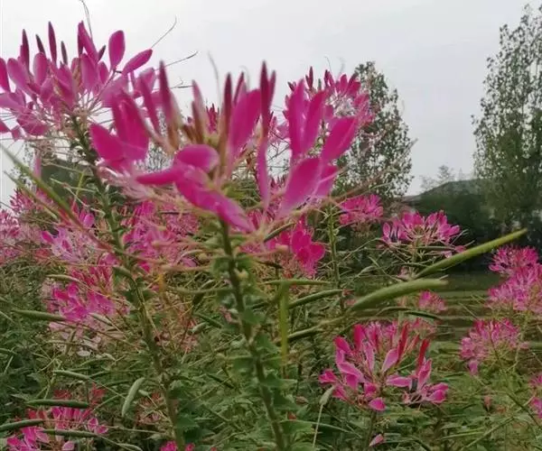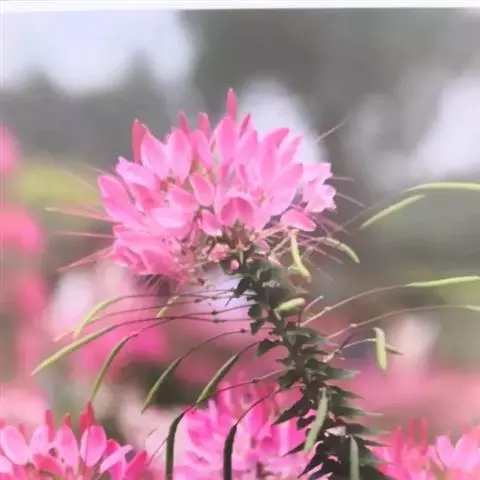醉蝶花(学名:Cleome spinosa Jacq.):一年生草本植物。花茎直立,株高40厘米-60厘米,有的品种可达1米, 其茎上长有粘汁细毛,会散发一股强烈的特殊气味;叶片为掌状复叶,小叶5枚-7枚,为矩圆状披针形;总状花序顶生,花由底部向上次第开放,花瓣披针形向外反卷,花苞红色,花瓣呈玫瑰红色或白色,雄蕊特长;蒴果圆柱形,种子浅褐色。花期在6月-9月,其花茎长而壮实,花朵盛开时,总状花序形成一个丰满的花球,朵朵小花犹如翩翩起舞的蝴蝶,非常美观。中国无野生,各大城市常见栽培。原产热带美洲,全球热带至温带栽培以供观赏,也是一种优良的蜜源植物。