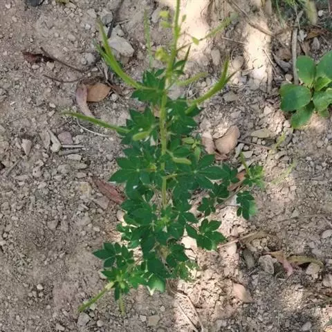 醉蝶花是一年生强壮草本植物,高1-1.5米,全株被粘质腺毛,有特殊臭味,有托叶刺,刺长达4毫米,尖利,外弯。叶为具5-7小叶的掌状复叶,小叶草质,椭圆状披针形或倒披针形,中央小叶盛大,长6-8厘米,宽1.5-2.5厘米,最外侧的最小,长约2厘米,宽约5毫米,基部锲形,狭延成小叶柄,与叶柄相联接处稍呈蹼状,顶端渐狭或急尖,有短尖头,两面被毛,背面中脉有时也在侧脉上常有刺,侧脉10-15对;叶柄长2-8厘米,常有淡黄色皮刺。