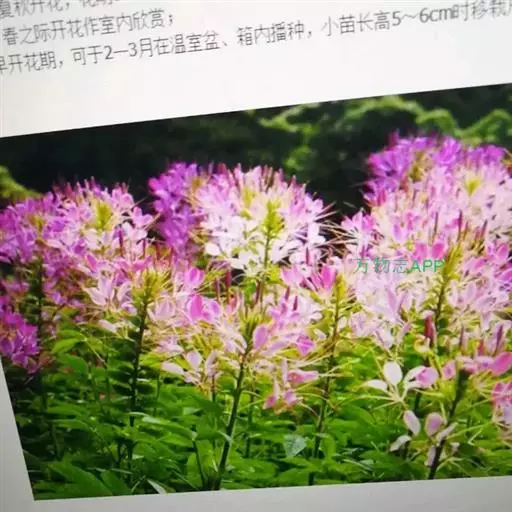 醉蝶花花为红色和白色。英文名Spiderflower(蜘蛛花)源于这长长雄蕊,因为它看上去也像手足长长的蜘蛛。适宜布置砟秋季花坛、树坛等,或作密源植物栽培,也可盆栽观赏。醉蝶花—花多色,颇为美丽,适于布置花坛、花境或在路边、林缘成片栽植。适于在庭院窗前屋后布置,同时也可切花插瓶观赏。花在傍晚开放,第二天白天就凋谢,此花可谓是夏夜之花,短暂的生命给人虚幻无常的感觉。醉蝶花适合在花坛中种植。而且此花一天就谢了,味道也不是很好,所以不适合剪下来。建议送花的种子,可以让对方第二年种下去,欣赏它的美丽。或者是整盘送给你的朋友会更好。