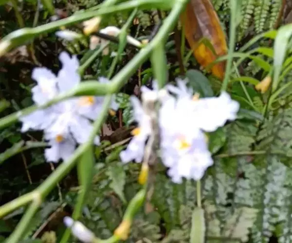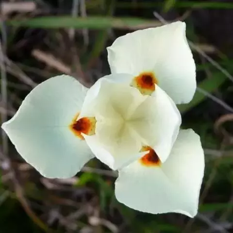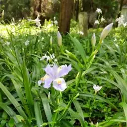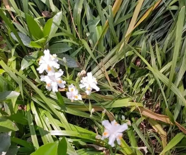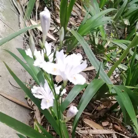 双色野鸢尾为多年生草本植物,叶子呈剑状淡绿色。…