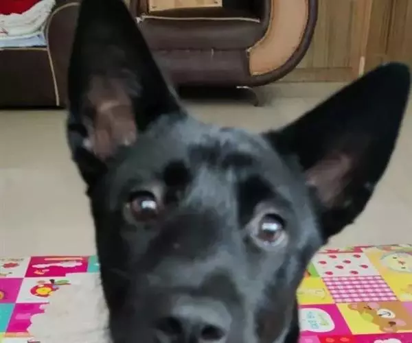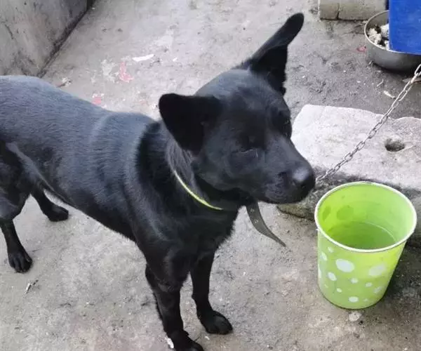 警觉时三角耳朵立起,轻微下垂的黑色嘴唇,颈部较粗,肌肉发达有力,平展密实的短毛,厚厚的细绒毛,长长的四肢张开站立,脚掌结实有力,脚趾弓形,爪短。