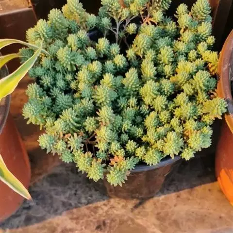 薄雪万年草别名矶小松,景天科景天属多年生草本植物,其细小的蓝绿色棒状叶片环绕生长于茎端,…