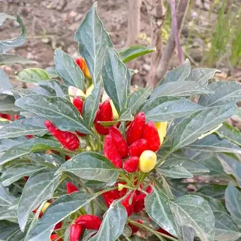 朝天椒茄科辣椒属一年或多年生草本植物;卵形;花通常单只生长于二分叉间,花梗直立,花稍俯垂,…