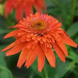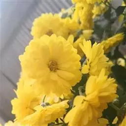 头状花序,总苞黄褐色,半球状,周边花舌状,金黄色,花直径约3cm。株型紧凑,不断分枝,不断抽生花序,故花多繁盛,开花不绝。