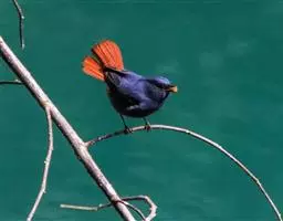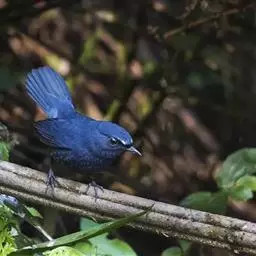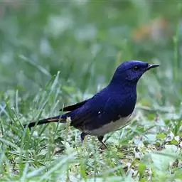 蓝大翅鸲是鹟科、大翅鸲属小型鸟类,体长19-21厘米。两翅尖长。雄鸟通体鲜紫蓝色具金属光泽。…