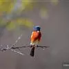 蓝额红尾鸲体长14-16厘米。雄鸟夏羽前额和一短眉纹辉蓝色,…