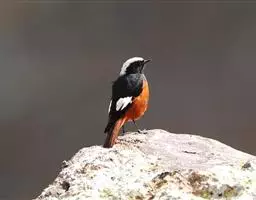白喉红尾鸲,小型鸟类,体长14-16厘米。雄鸟额至枕钴蓝色,头侧、背、两翅和尾黑色,翅上有一大形白斑,…