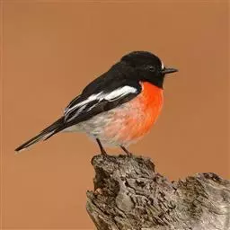 雌雄两性相异。雄性成鸟的头部白色,上体余部及尾黑色;下体赤褐色。雌性成鸟的头、背等均橄榄褐;下体较雄鸟色淡。