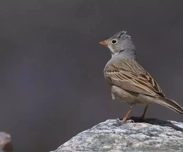 灰颈鹀(学名:Emberiza buchanani):体重19-22克,体长147-175毫米。嘴、脚红色,眼先和眼周白色,额、头顶至后颈、头侧和颈侧灰色。背灰褐色具细的黑褐色纵纹,腰和尾上覆羽纵纹不明显或无纵纹。颧纹、颏和上喉白色,胸和两胁淡红褐色或棕栗色。两胁沾灰色,其余下体白色或皮黄色,两翅和尾黑褐色。最外侧两对尾羽内翈大部分白色,翅具淡棕色羽缘。