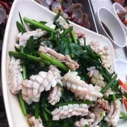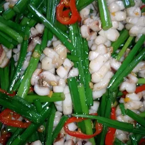 调料:大蒜(白皮)10克,姜5克,植物油60克,酱油5克,料酒10克,盐3克教您韭菜炒鱿鱼怎么做,如何做韭菜炒鱿鱼才好吃 1. 韭菜、辣椒分别洗净;
