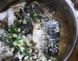 10. 再倒20克油入锅烧热,洒蒜丁爆香;