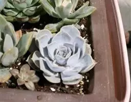 蓝石莲是景天科、拟石莲花属的多肉植物。茎部粗壮,成熟植株茎部木质化。叶片莲座型密集排列,株径不会很大,…