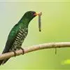 翠金鹃体长约17厘米,雄鸟上体辉绿色,头至背缀有很多棕栗色,…