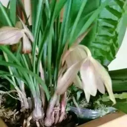 在春秋两季均可进行,一般每隔三年分株一次。凡植株生长健壮,假球茎密集的都可分株,分株后每丛至少要保存5个连结在一起的假球茎。分株前要减少灌水,使盆土较于。分株后上盆时,先以碎瓦片覆在盆底孔上,再铺上粗石子,占盆深度1/5至1/4,再放粗粒土及少量细土,然后用富含腐殖质的沙质壤土栽植。栽植深度以将假球茎刚刚埋入土中力度,盆边缘留2厘米沿口,上铺翠云草或细石子,最后浇透水,置阴处10-15天,保持土壤潮湿,逐渐减少浇水,进行正常养护。