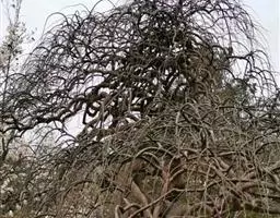 树皮暗灰色,粗糙,不规则纵裂。幼树枝条直立,且被白色毛;老树枝条先端下垂,有时木栓质发达成为瘤状。…