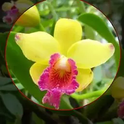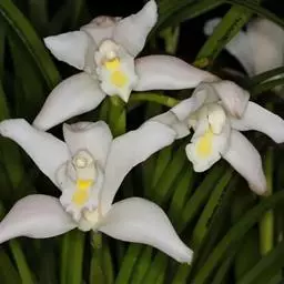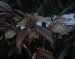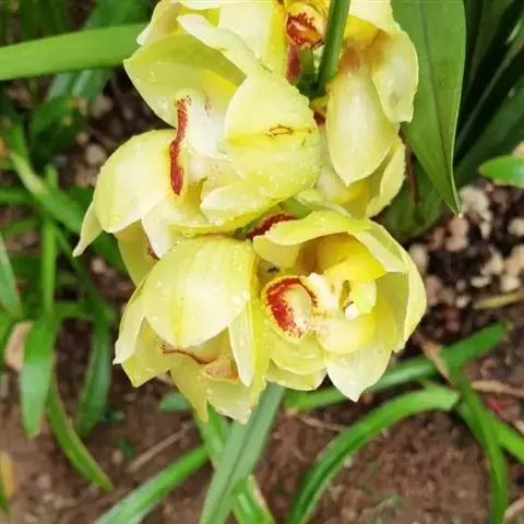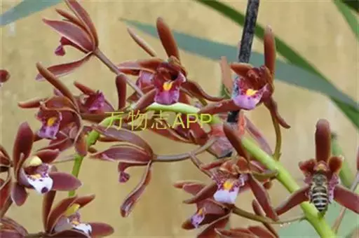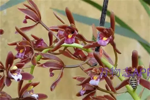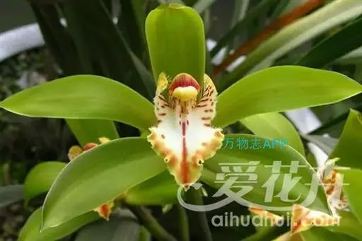 斑舌兰(学名:Cymbidium tigrinum Parish ex Hook.):附生植物;假鳞茎近球形或卵球形,强烈压扁,呈双凸镜状,裸露,不为叶鞘所包。叶通常2-4枚,生于假鳞茎顶端,狭椭圆形。花葶发自假鳞茎基部,长10-20厘米,斜展;总状花序具2-5朵花;花稍有香气;萼片与花瓣黄绿色,略有红褐色晕,基部有紫褐色斑点,唇瓣白色,授粉后变为粉红色;花瓣略短于萼片;唇瓣近倒卵形,3裂。花期3-7月。
