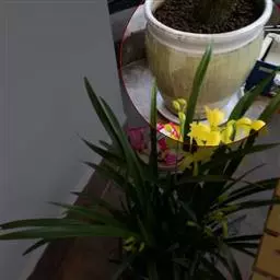 上盆(或翻盆)时间一般在春季3-4月或秋季10-11月。花盆以口小、盆深、底孔大的为佳。新从山上挖来的野生苗需理植于瓦盆(泥盆)中,这样兰花泥易干,通气性好.容易发根;2-3年后方可换人紫砂盆或瓷盆。兰花种植(在盆中)的方法与一般花卉不同,尤其是名种兰花,翻种移盆必须洗根。方法足将根浸入清水中,用旧牙刷或毛笔轻轻洗刷,切勿用力过大伤根;用剪刀将残叶、黄叶、断裂根、发黑腐烂根剪去,注意勿伤幼芽。然后将处理好的植株放在阴凉通风处晾干,待根部发白并显细小皱纹柔软时,再植入盆中。
