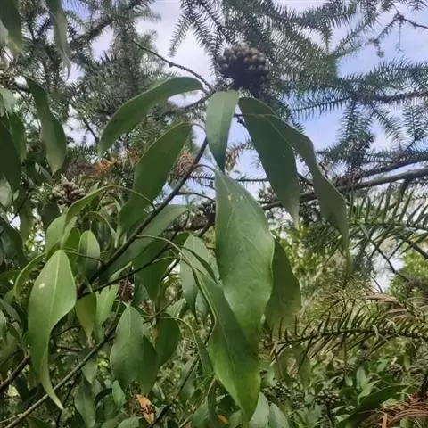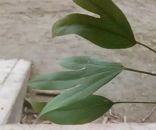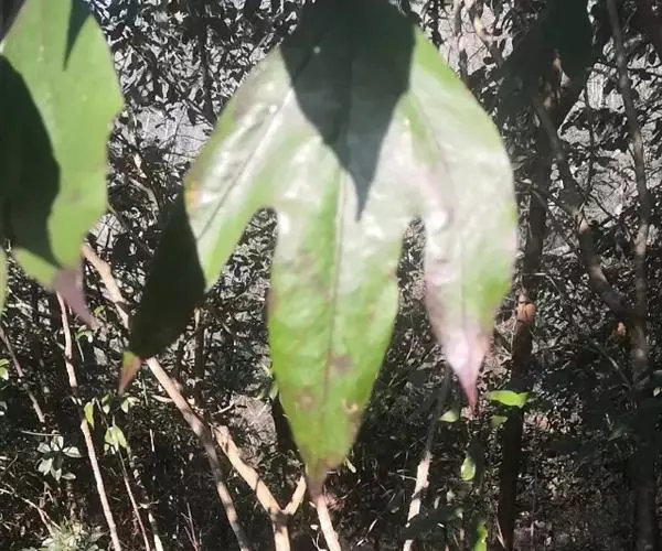 乔木或灌木,高2-8米。叶片厚纸质或革质,密生粗大半透明红棕色腺点(在较薄的叶片才可以见到),叶形变异很大,不分裂叶片通常为椭圆形,稀长圆状椭圆形、椭圆状披针形、披针形或线状披针形,长7-10厘米,宽1.5-4.5厘米,有时更大,先端渐尖,基部钝形或楔形,分裂叶片倒三角形,掌状2-3深裂或浅裂,稀5裂,两面均无毛,边缘全缘,或近先端处有不明显细齿一至数个,或有明显疏离的牙齿,基脉三出,侧脉4-6对,网脉两面显著且隆起,有时上面稍下陷,有时下面较不明显;叶柄长0.5-5厘米,无毛。