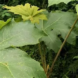 树参(学名:Dendropanax dentiger (Harms) Merr.)是五加科,树参属乔木或灌木,高可达8米。叶片厚纸质或革质,叶形变异很大,不分裂叶片,先端渐尖,分裂叶片倒三角形,两面均无毛,基脉三出,叶柄无毛。伞形花序顶生,有花,总花梗粗壮,苞片卵形,小苞片三角形,宿存;花瓣三角形或卵状三角形,果实长圆状球形,稀近球形,8-10月开花,10-12月结果。