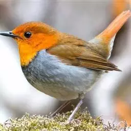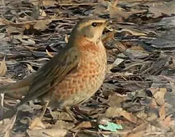 日本歌鸲:体型小似麻雀,但羽毛颜色较为美丽。嘴细长,嘴须不发达;翅短圆,上体草黄褐;雄鸟喉部橙棕色,…
