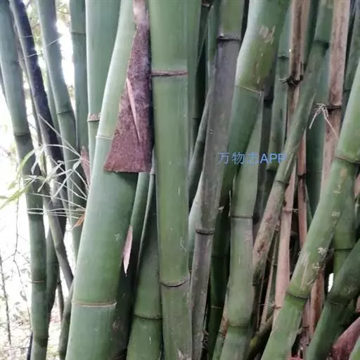 形态特征:多年生竹类,地下茎匍匐,秆高约3m,直径1~l.5m,箨甚长,简期几抱没节间,外表粗糙,具刺毛,不易脱落,节间lO~20cm,上端节上着生细枝,3出或多数,亦具有箨或无箨,叶舌片黑褐色,密生毛茸,假叶长卵形,锐尖头,叶粗革质,平行脉宽2~3m,1小枝叶约l~3枚。叶柄扁平,叶片披针形革质,叶背带粉色,密生短刚毛,尤以渐尖锐尖,楔脚或圆脚,长l0~20cm,宽1.5~2cm,极少开花。