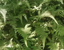 叶疏生,一型或近二型;叶柄长10-40厘米,粗1-1.5毫米,深禾秆色,基部疏被鳞片,通体密被钩状短毛;叶片长12-20厘米,下部宽7-11厘米,卵状三角形,长尾头,基部圆形,三出,侧生羽片一对(罕有2对),斜上,对生,长5-9厘米,中部宽1.5-2.5厘米,长圆披针形,短渐尖头,基部圆形或圆楔形,柄长1-2毫米,全缘;顶生羽片远较大,长15-18厘米,中部宽3-3.5厘米,披针形,渐尖头,基部圆形或圆楔形,柄长6-12毫米,边缘全缘或呈浅波状。叶脉下面较明显,侧脉斜展,并行,小脉在羽片中部通常8-9对,斜展或近平展,侧脉间基部有一个由小脉顶端相连形成的三角形网眼,其交结点延伸外行小脉和其余侧脉连结成近方形网眼。叶干后坚纸质,上面除沿主脉凹槽密被钩状毛外,其余光滑无毛,下面沿主脉、侧脉及小脉均被钩状毛,脉间也有稀疏的钩状毛。能育叶略高出于不育叶,有较长的柄,羽片较狭。孢子囊群生于小脉上,初为圆形,后变长形并成双汇合,无盖;孢子囊体上有2根钩状毛。