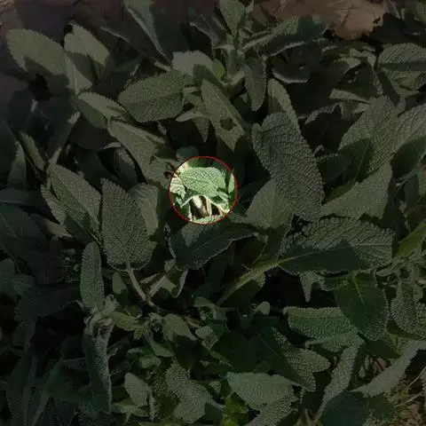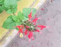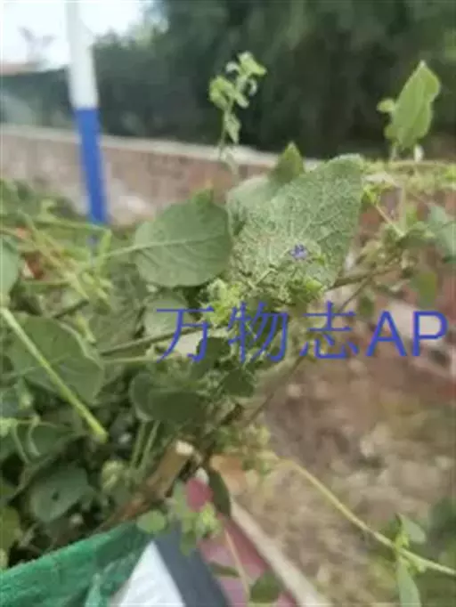 一年生、直立、粗壮、多分枝草本,揉之有香气。茎高60-160厘米,钝四稜形,具四槽,被平展刚毛。叶卵形至宽卵形,长1.4-11厘米,宽1.2-9厘米,生于花枝上的较小,先端近锐尖至钝形,基部圆形或浅心形,常稍偏斜,边缘为不规则的波状,具小锯齿,薄纸质,上面榄绿色,下面较淡,两面均被疏柔毛;叶柄柔弱,长0.5-6厘米,腹凹背凸,毛被同茎。聚伞花序2-5花,有些为单花,着生于渐变小叶腋内,成总状花序或圆锥花序排列于枝上。花萼花时长约5毫米,宽约3毫米,但很快的长大而长达12毫米,宽至6.5毫米,10条脉极凸出,外被长柔毛及淡黄色腺点,内部有柔毛簇,萼齿5,短三角形,先端长锥尖,长约1.5-2毫米,直伸。花冠蓝色,长6-8毫米,外面除冠筒下部外被微柔毛,冠筒基部宽约1毫米,至喉部略宽,宽约2毫米,冠檐二唇形,上唇先端2圆裂,裂片外反,下唇3裂,侧裂片与上唇裂片相似,中裂片囊状,略短。雄蕊4,下倾,插生于花冠喉部,花丝扁平,被疏柔毛,花药汇合成1室。花柱先端2浅裂。花盘阔环状,边缘微有起伏。子房裂片长圆形,无毛。小坚果常2枚成熟,扁平,长约4毫米,宽约3毫米,暗褐色,具细点,基部具二着生点。花、果期一年四季。