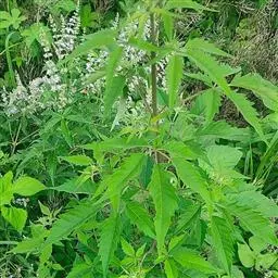 山香(Hyptis suaveolens (L.) Poit.),又名山薄荷、毛老虎、蛇百子、毛射香、药黄草、假蕾香、臭草和狛骨消,唇形科山香族植物。一年生、直立、粗壮、多分枝草本,揉之有香气,茎高60-160厘米,叶卵形至宽卵形,生于花枝上的较小,先端近锐尖至钝形,基部圆形或浅心形,聚伞花序2-5花,有些为单花,着生于渐变小叶腋内,成总状花序或圆锥花序排列于枝上,花冠蓝色,外面除冠筒下部外被微柔毛,小坚果常2枚成熟,扁平,暗褐色,具细点,基部具二着生点,花、果期一年四季。山香原产热带美洲,现广布于全热带,我国广西,广东,福建及台湾也有分布,常生于开旷荒地上。山香草入药,内服或外用,治赤白痢、乳腺炎、痈疽、感冒发烧、头痛、胃肠涨气、风湿骨痛、娱蚣及蛇咬伤、刀伤出血、跌打肿痛、烂疮、皮肤搔痒、皮炎及湿疹等症。
