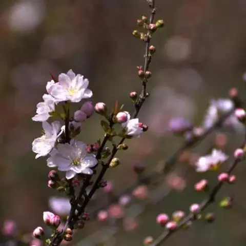钟花樱桃 Yu et Li):乔木,灌木,高3-8米,树皮黑褐色。小枝灰褐色或紫褐色,嫩枝绿色,无毛。…