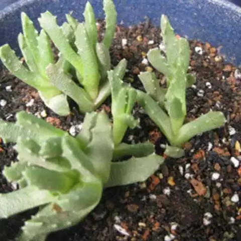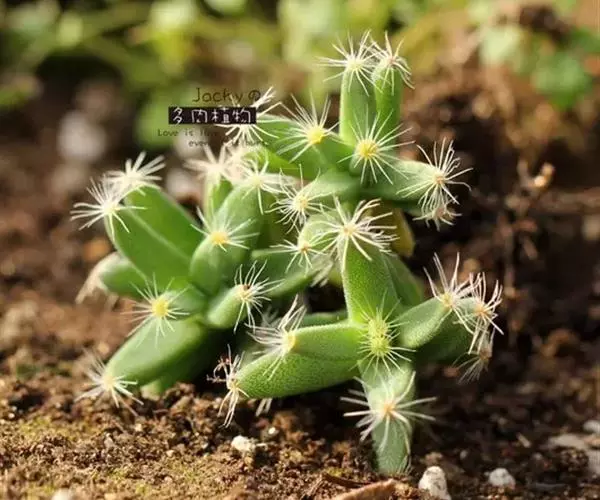 主要生长期为春、秋及初夏季节,要求有充足的光照,若光照不足会使叶与叶之间的距离拉长,株形松散、影响观赏、开花也较为稀少。浇水做到“干透浇透”、每15-20天施一次腐熟的稀薄液肥或“低氪高磷钾”的复合肥。夏季高温时植株虽无明显的休眠期,但生长娈慢,可稍加遮光、以防烈日曝晒;但也不能过于荫蔽、以光线明亮又无直射阳光为佳、也不必浇太多的水、并注意通风良好,以防因闷热潮湿引起的肉质叶脱落。冬季放在阳光充足的室内。节制浇水,停止施肥,温度宜保持10℃左右。每年春季换盆一次、盆土要求疏松肥沃,含有适量的石灰质、并具有良好的排水透气性。可用腐叶土或泥炭土3份、园土1份、杠沙或蛭石3份、并搀入少量的骨粉等石灰质材料混后使用。紫晃星的栽种有两种,以观花为主的可将肉质根埋入土中、其花朵大而多;也可将肥厚的肉质根像“露根式盆景”那样提出土面。虽然开花少了些、但肉质根苍劲古朴、与碧绿的棒状叶交相辉映,如同一株挺拔苍翠的古松,非常美丽。值得注意的是,提根应逐渐进行,不可一次究成,以免植株长势减弱,甚至死亡。