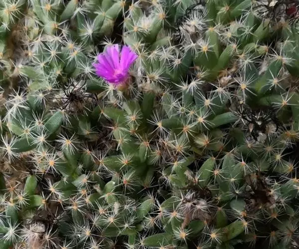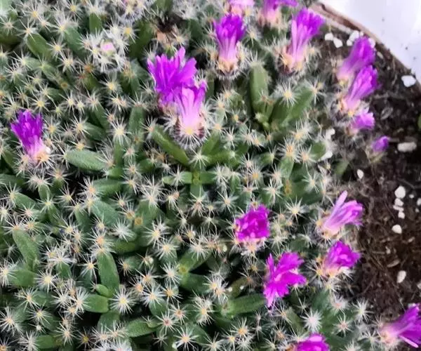 紫晃星(学名:Trichodiadema densum Schwantes)是番杏科仙花属多年生肉质植物,植株呈常绿灌木状,具肥厚粗大的肉质根,其表皮浅黄色,稍粗糙、肉质叶对生,顶端有20-25根白色刚毛,叶长1.5-2厘米,粗0.5厘米。花淡紫红色直径约4厘米,花期主要为春季李、夏秋季节也有少量的花朵开放。