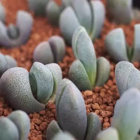 枝干番杏 Ihlenf.)是中央种子目,番杏科植物,叶非常肉质,排列形似兔耳朵,具观赏价值,…