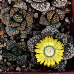 生石花,番杏科生石花属多年生肉质草本植物。植株几乎无茎;花朵较大,颜色艳丽,呈多边形,…