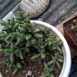 姬红小松(T. bulbosum)又名小松波,具肥厚多肉的黄褐色茎干,多分枝茎、枝粗糙、肉质叶对生,纺锤形,较紫晃星小,其它特征同紫晃星。