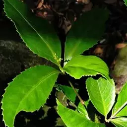 草珊瑚,学名:Sarcandra glabra (Thunb.) Nakai,为金粟兰科多年生常绿亚灌木,俗称满山香、观音茶、九节花、接骨木等。其形态秀丽、四季馨香,具有极高的药用、食用及观赏价值。