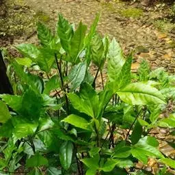 (4)移栽:种子和扦插繁殖的苗木,一般在当年11-12月或翌春 2-3月起苗移栽。在整好的畦上,按株行距20厘米×30厘米定植,并浇透定根水。成活后,需及时加强田间管理。